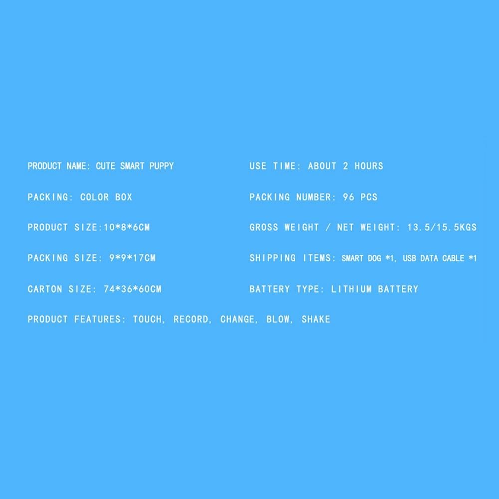 Detailed Information About The Product:Electronic Pets Toys Children smart dog nductive Press puppy Intelligent robot interaction fun playmate sound Flexible recording
