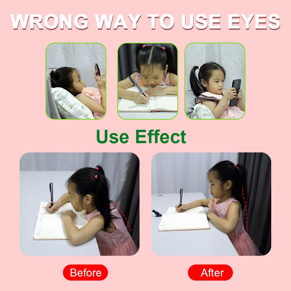 Small smart sensor protectors help children stay seated correctly and avoid myopia problems. Four colors are available: black, white, pink, and blue