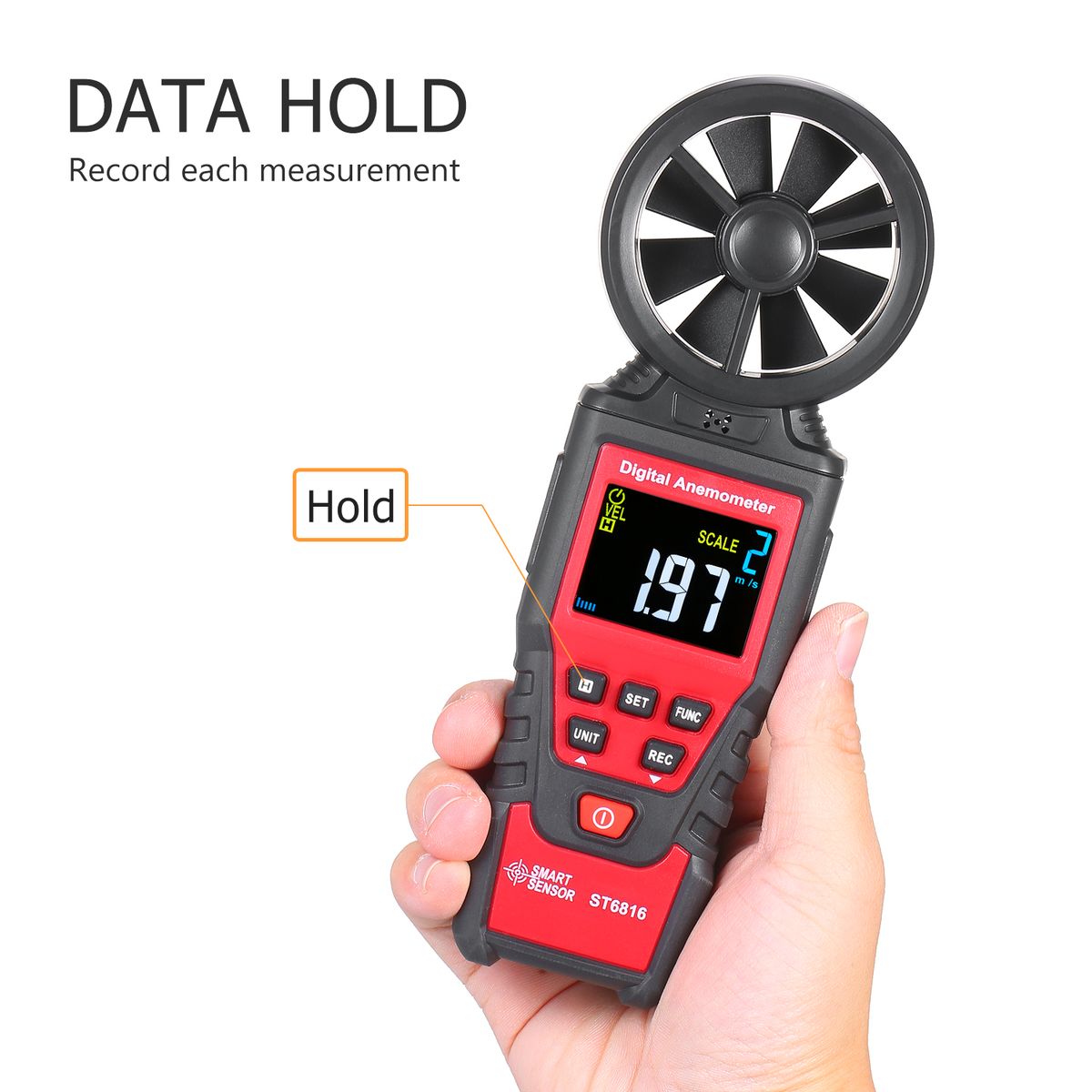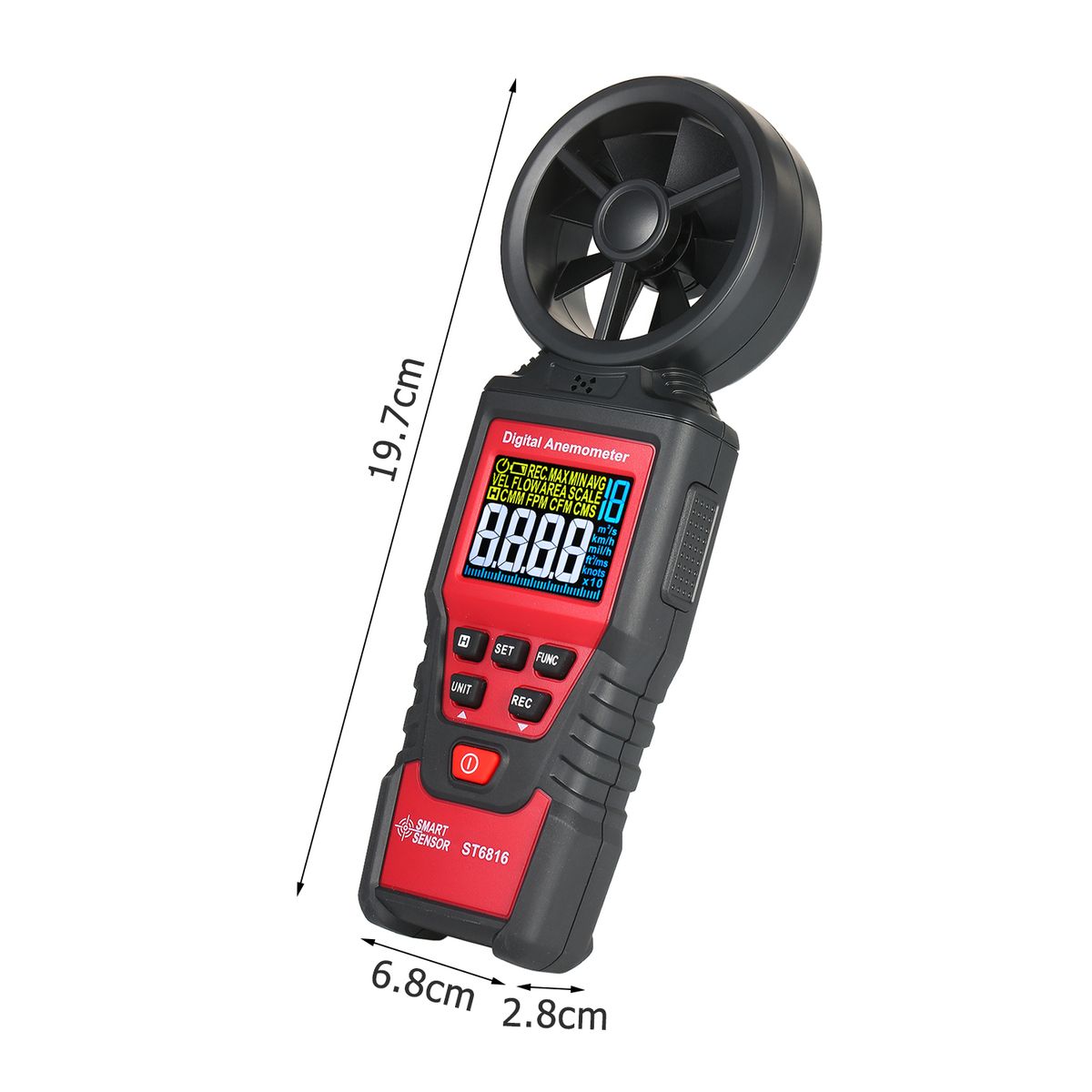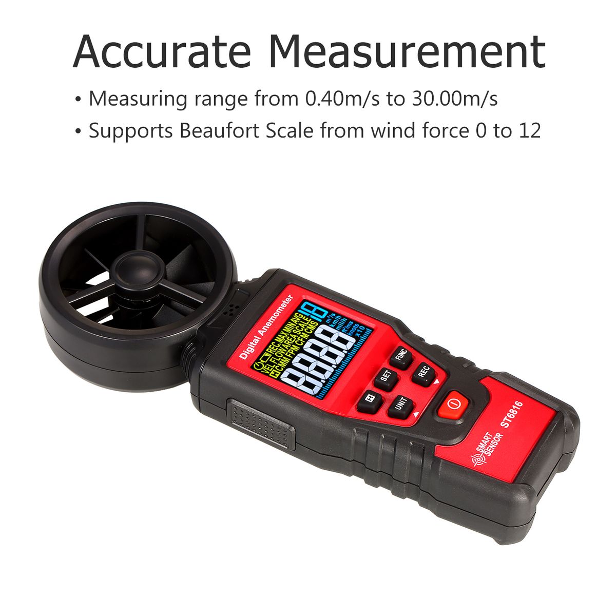 SMART SENSOR ST6816 Handheld Digital Anemometer Wind Speed Measurement Measurer Air Velocity Airflow Meter Gauge with LCD Backlight Measuring Range 0.40m/s~30.00m/s Maximum/Minimum/Average Value Storage Bag for Shooting(Batteries Not Included)