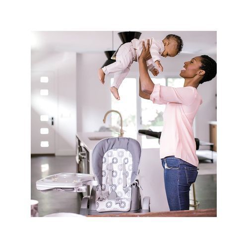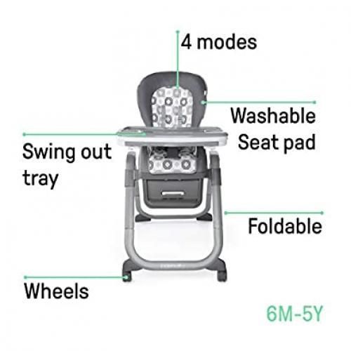 grow up fast, and this convertible high chair grows with them. the smart serve 4-in-1 high chair offers beautiful design and intelligent functionality that parents need to keep up with their quickly developing kids. there are 4 ways to use this high chair as your baby and your family grows. choose between the full sized high chair setting, booster seat setting, toddler chair setting, or use the booster seat and toddler chair to seat two kids at once! the swing tray design moves out of the way with just one movement and just one hand, making it easier to take baby in and out. tucked discreetly inside is a second tray made just for parents. pull out the hidden-drawer tray for easy access to cutlery or other items that you can store right inside. you can also use the tray extension to keep things out of baby's reach. the detachable tray and insert are dishwasher safe, and the fabric seat pad and straps can be machine washed. every option gives your baby a seat at the table for more meaningful mealtimes and less kitchen clean-up.