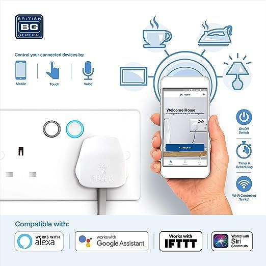 Take control of your devices from anywhere with this 900 series white moulded smart socket from British General. Simple to set up and ideal for retro-fit installation these sockets work using your home Wi-Fi network, providing an inexpensive smart home solution with no Hub required - simply download the BG Home App to control your sockets with your smartphone. Automate your devices with timers, scenes, delays and random operation, and protect your settings with the parental lock function whilst sharing control with others in your household. The smart home integrations with, Google Assistant, IFTTT and Siri shortcuts allow you to operate your sockets using your voice and set up automated actions based on geolocation, weather and more for a truly smart solution.