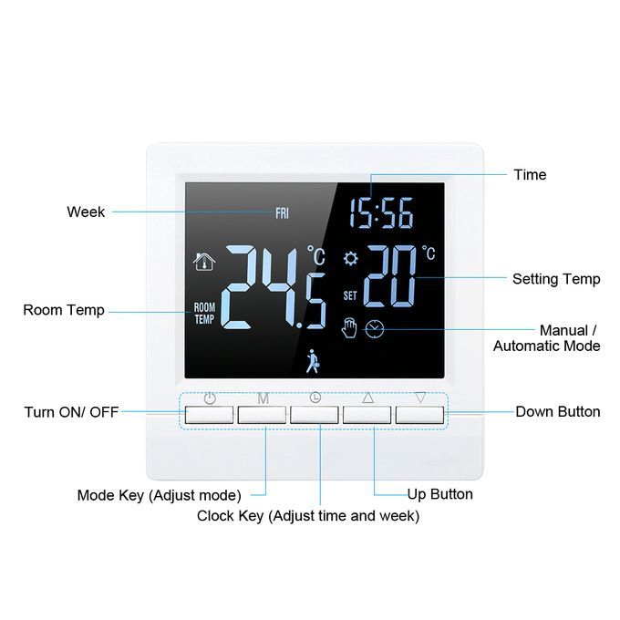 【Weekly Programmable】The thermostat supports different temperature setting accordingly with 6 time-modes daily.
