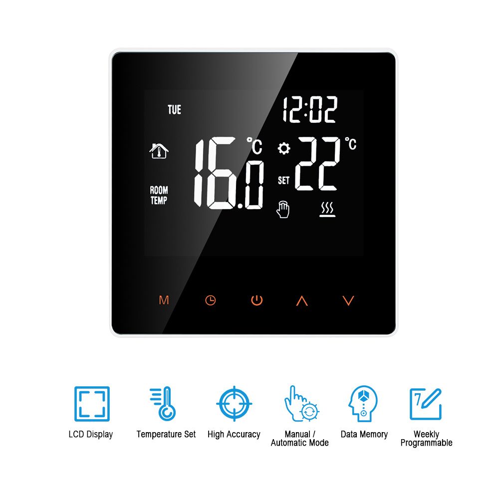Weekly Programmable: the thermostat supports different temperature setting accordingly with 6 time-modes daily.