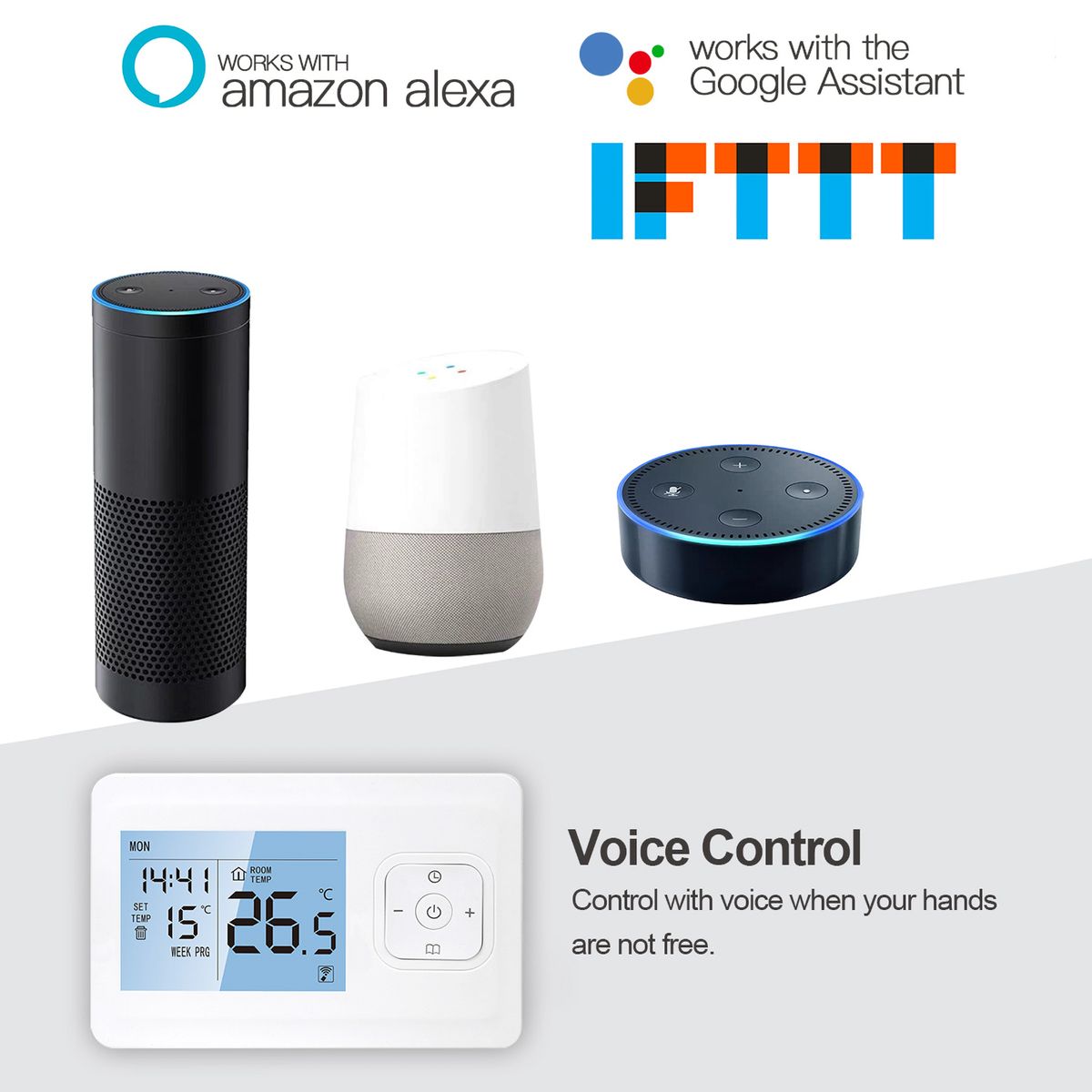 [Large LCD Screen]WIFI Smart Thermostat with large LCD screen for easy reading, and it displays indoor temperature, time, week, etc.