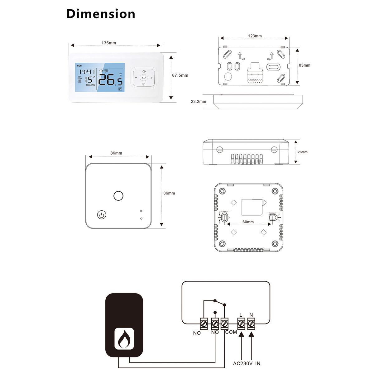 [Programmable]The thermostat can set the temperature for six time periods every day to control the heater and adopts weekly cycle programming to compare the results of the ambient temperature and the set temperature.