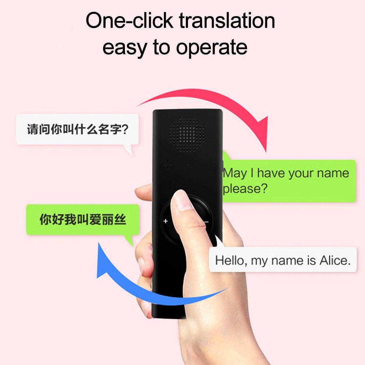 1. Press and hold the button of the translator to turn it on (with a tone)
