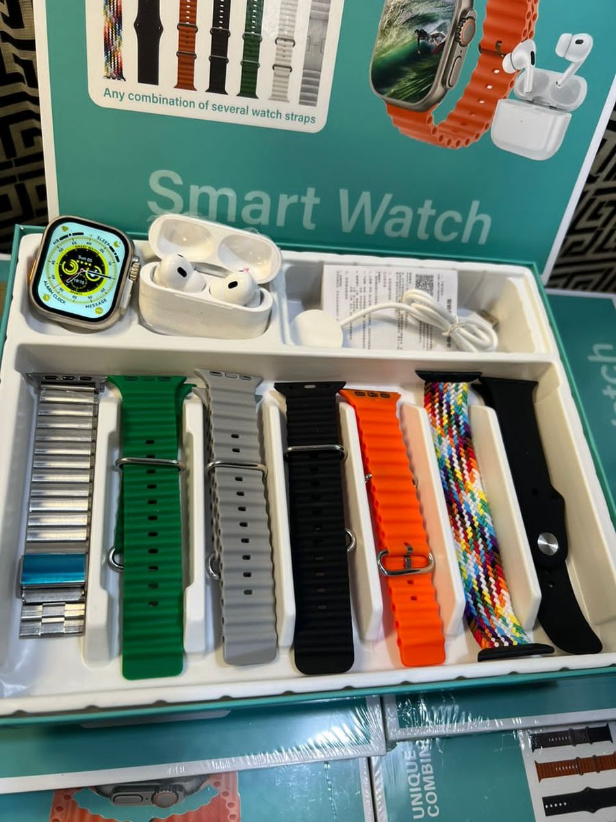 P9 unique combination smartwatch with 7 different strap,airpods, magnetic charger etc functions - fitnesstracker, passometer, call reminder,answer . screen size 2.3 inch ips screen resolution 484*396 resolution body material zinc alloy operation method full screen touch charging method wireless charging memory 128m compatible android 5.0 and ios10.0 language english, simplified chinese, traditional chinese, danish, greek, latin, romanian, turkish, hebrew, czech, polish, spanish, german,russian, portuguese, french, japanese, italian, vietnamese, korean, arabic, persian g-sensor sc7a20