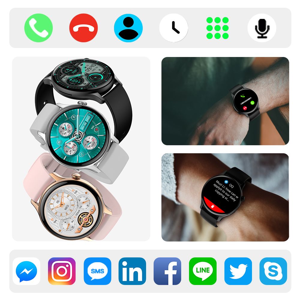 Bluetooth HD calls, make/receive/hang up calls on the watch. Supports online dial-up and address book. With low noise cancelling speakers, the sound is clear and smooth.