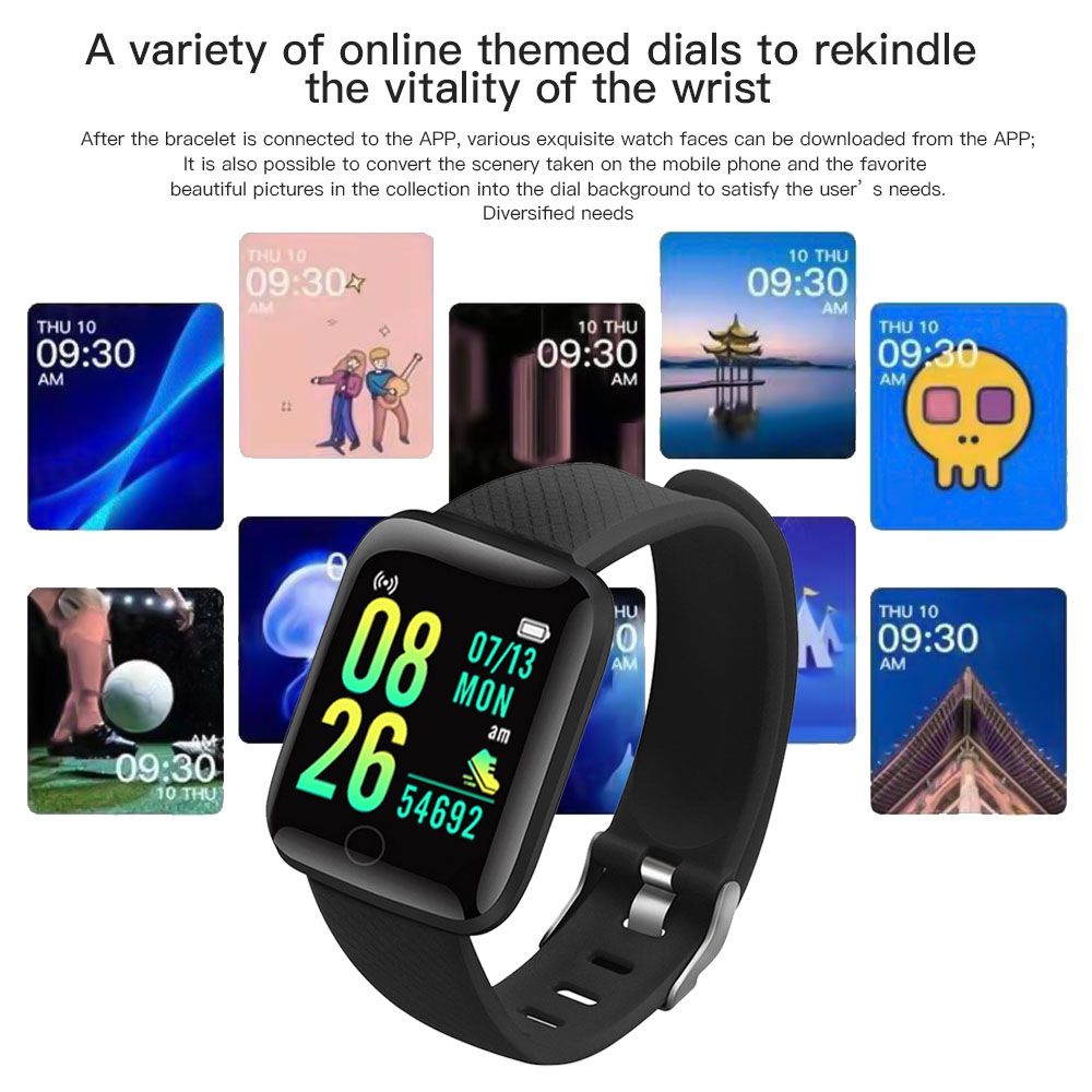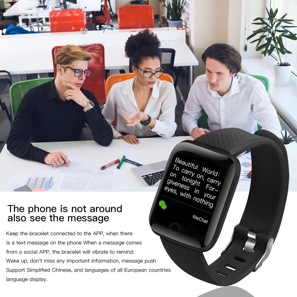 14.Functions: blood pressure, sleep tracking, push message, heart rate tracking, alarm clock, social media notification, message reminder, call reminder, distance record, step count record, calorie record