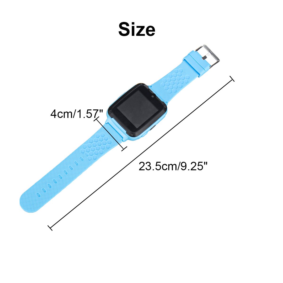 Suitable for: ChildrenStrap length: 23.5cm / 9.25"Dial width: 4cm / 1.57"Screen size: 1.54 inchFront-facing camera: Yes