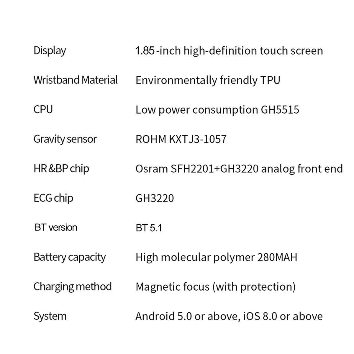Display: 1.85-inch 240*284 High-clear touchscreen