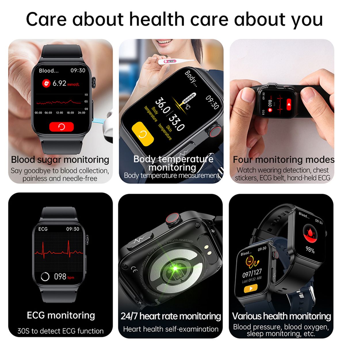 Wide Range of Applicable People: Whether it is diabetes patients who need to monitor blood sugar, fitness enthusiasts who love sports, or ordinary people who care about health, they can use this smartwatch.