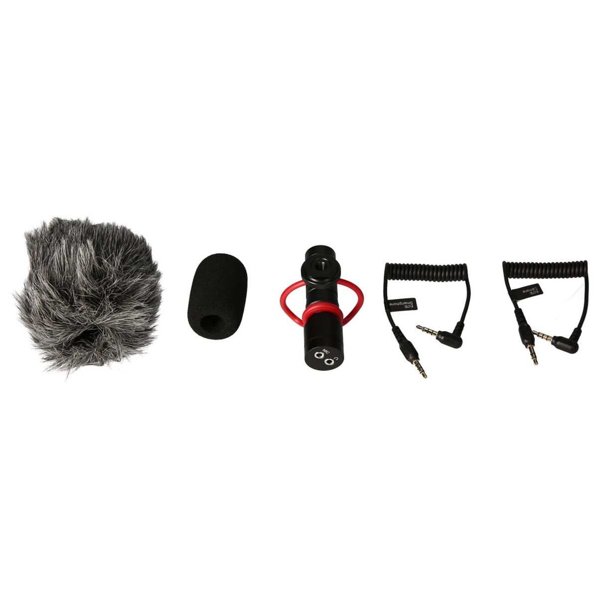 Professional video microphone kit, kit including super-cardioid condenser shotgun microphone with a sponge windscreen and a furry windscreen.