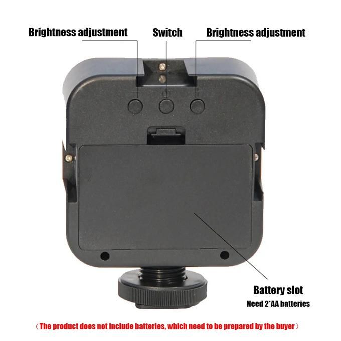 Features:- [Mini LED Video Light] Built-in 36 high-brightness LED beads, 5600K color temperature, adjustable brightness, providing bright lighting source; powered by 2 AA batteries (not included), no need to charge.
