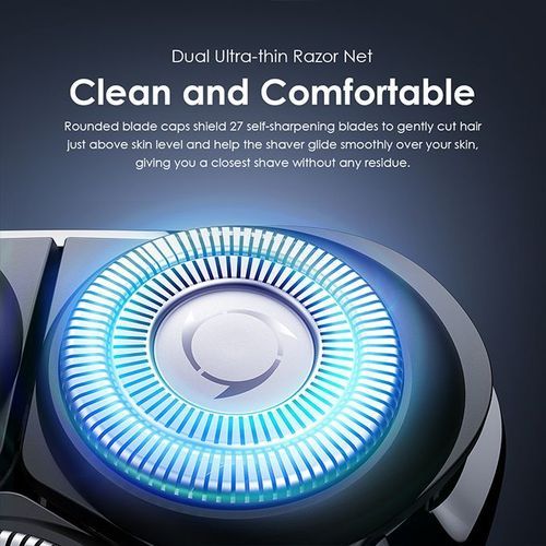Rounded blade caps shield 27 self-sharpening blades to gently cut hair just above skin level and help the shaver glide smoothly over your skin, giving you a closest shave without any residue.