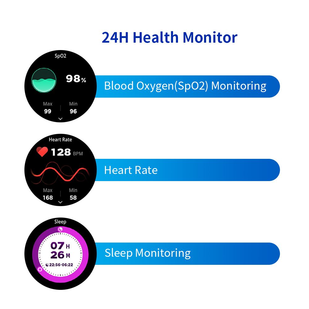 All-weather heart rate monitoring, blood oxygen saturation measurement, timely feedback on sleep, stress testing, provide a full range of health data to protect your health and life.
