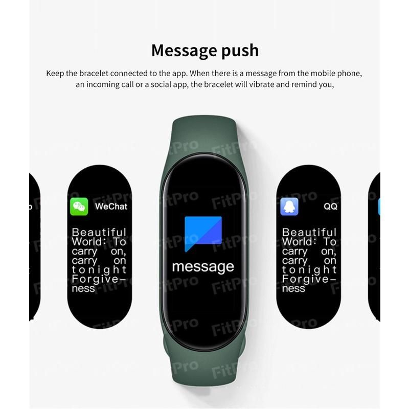 2 【Multiple online theme dials】After the bracelet is connected to the fitProAPP, you can download various exquisite dials from the fitProAPP; you can also convert the scenery and favorite pictures you took in your mobile phone into the background of the dial to meet the diverse needs of users .