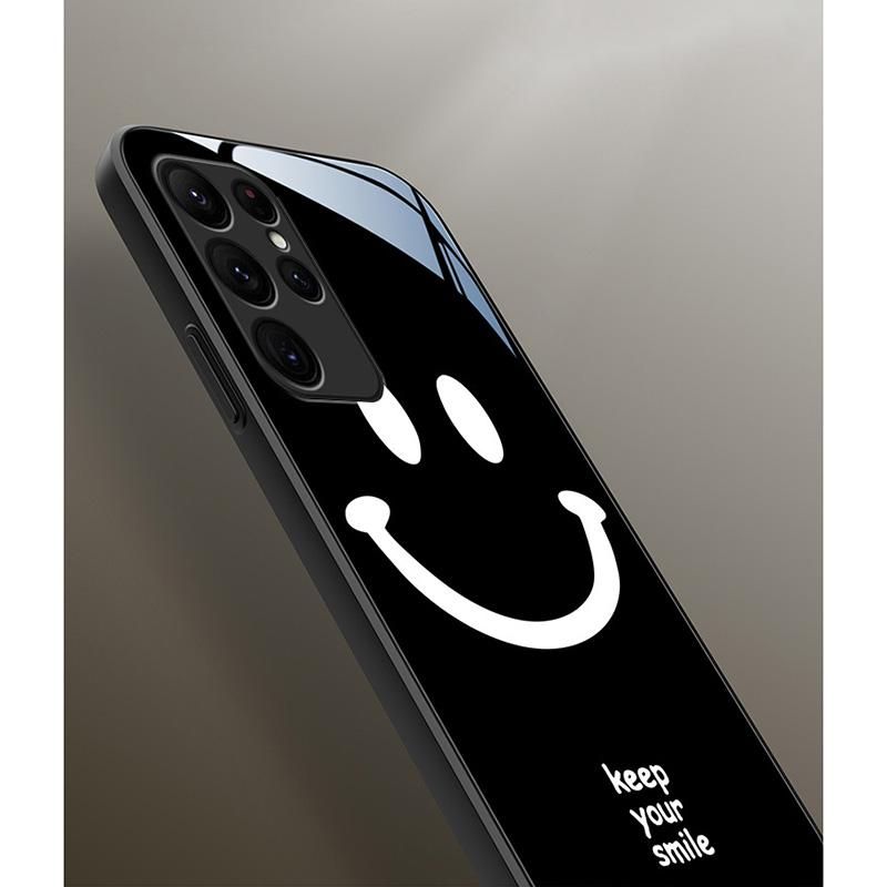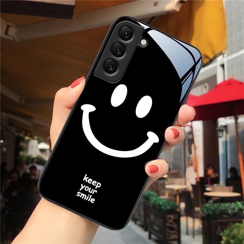 Smiley Tempered Glass Case for Samsung Galaxy S22 S21 S20 FE Ultra S10 S9 S8 Plus 5G S10e NOTE 20 10 Lite 9 8 Couple Phone CoverKey Features