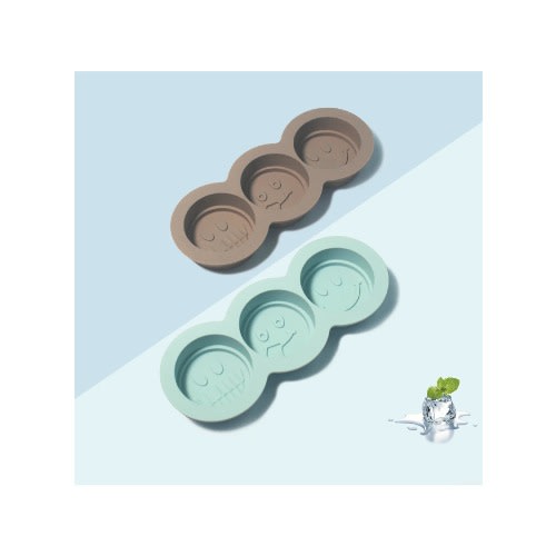 Smiley Shaped Ice Cube Silicone Mould - Light Blue& Brown