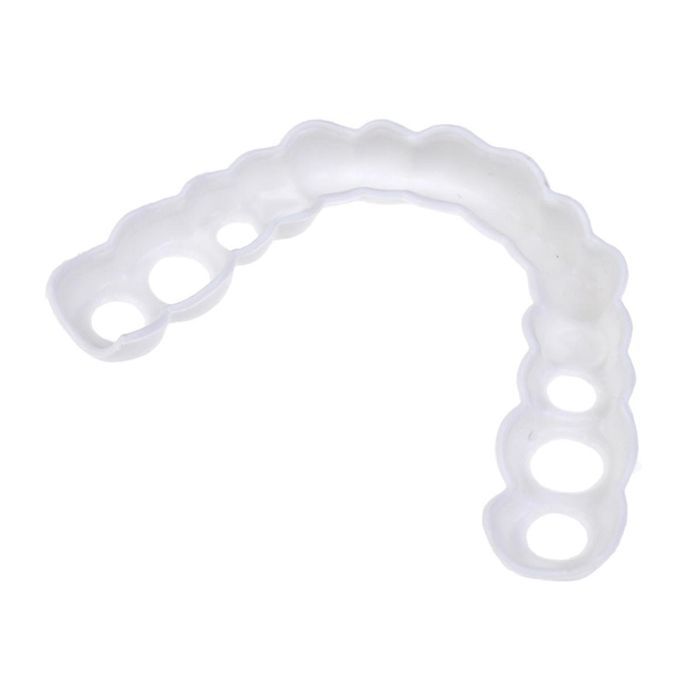 A special mould works to disguise crooked, stained, missing and gapped teeth.It can be securely attached to the teeth. Super Comfortable, Comfort Fit Teeth.A removable,reusable temporary device.Easy to use, just wear it on your teeth with your hands. One size fits all.New design. much more real, much more closing to your teeth. Please clean after use.