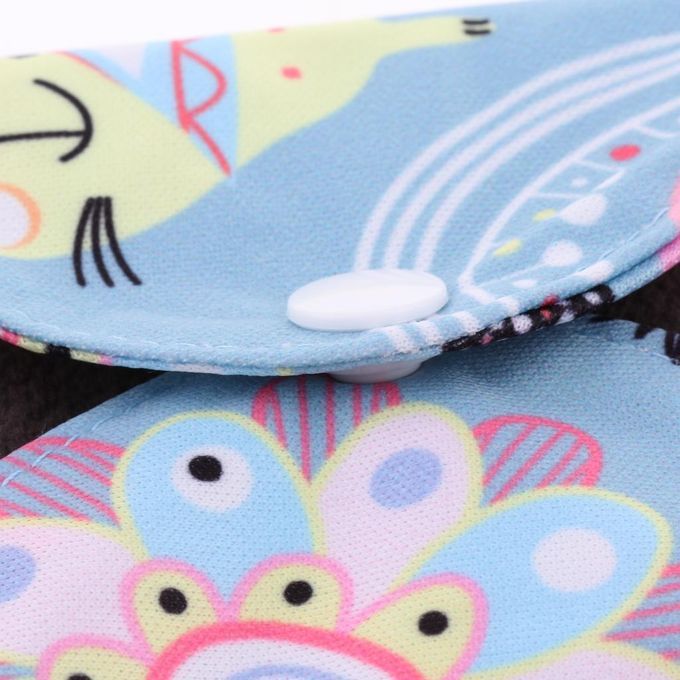 Reusable sanitary pad for women physiology, unique digital printing, antibacterial, anti-allergic and breathable.