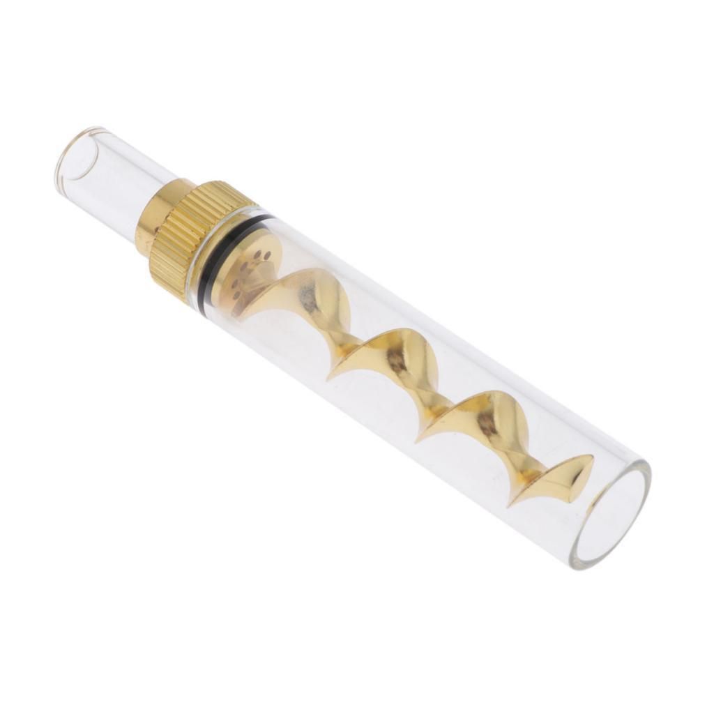 Usage: black rubber cover, brass metal accessories pulled out, tobacco into the glass tube, brass metal accessories set in, upside down counterclockwise turn a few times, let tobacco filled the whole glass tube.