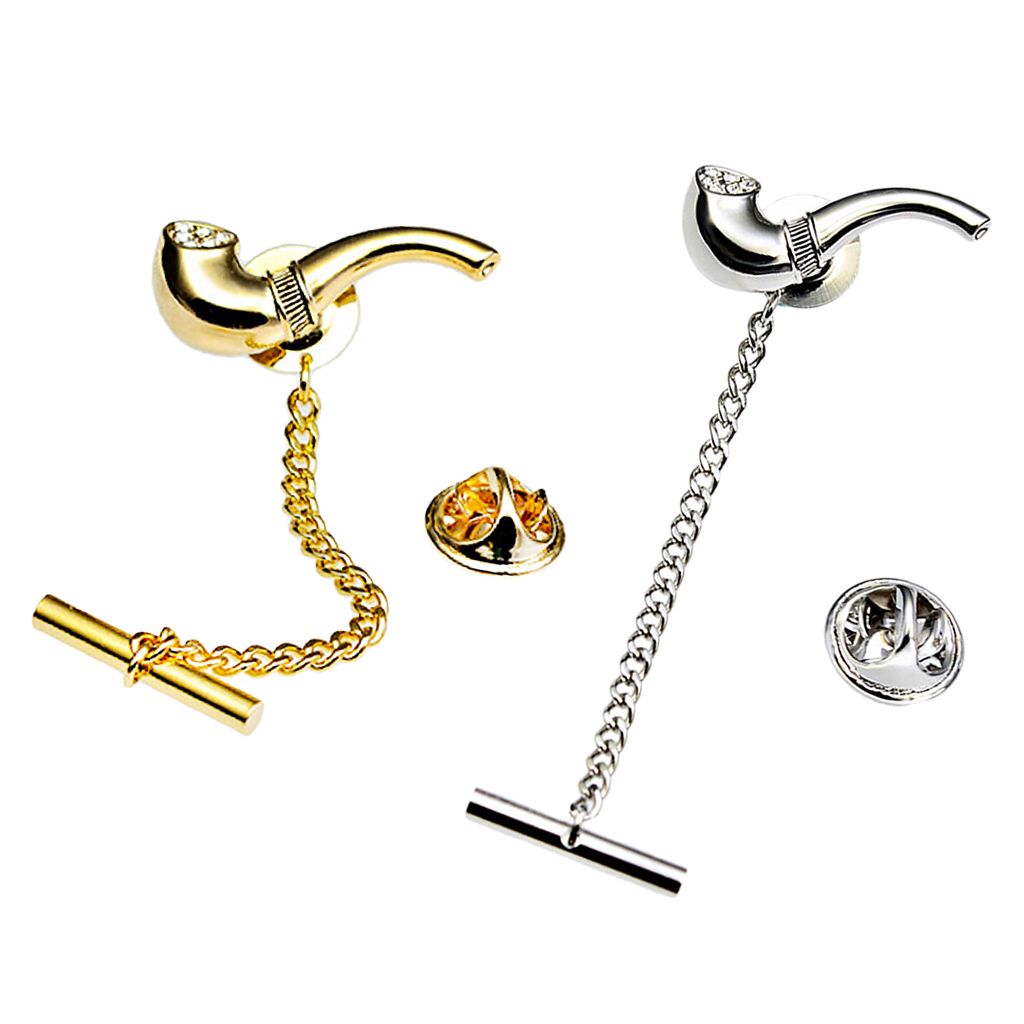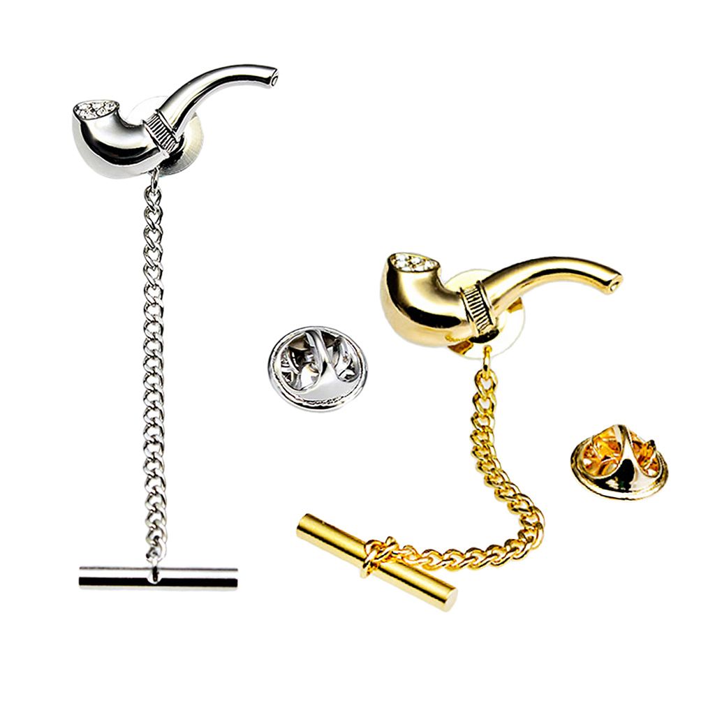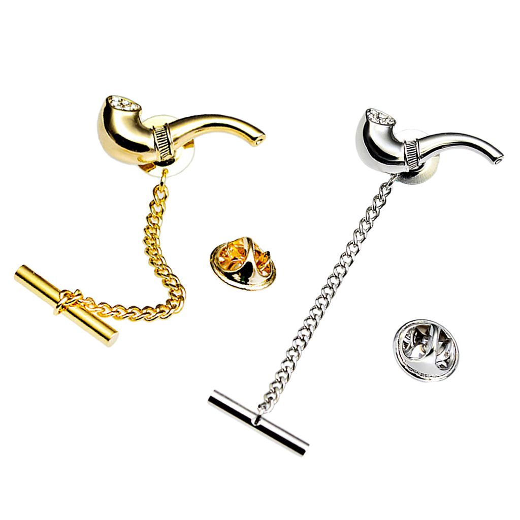 Shinny smoking pipe tie tack for men, colors in silver tone and gold tone.