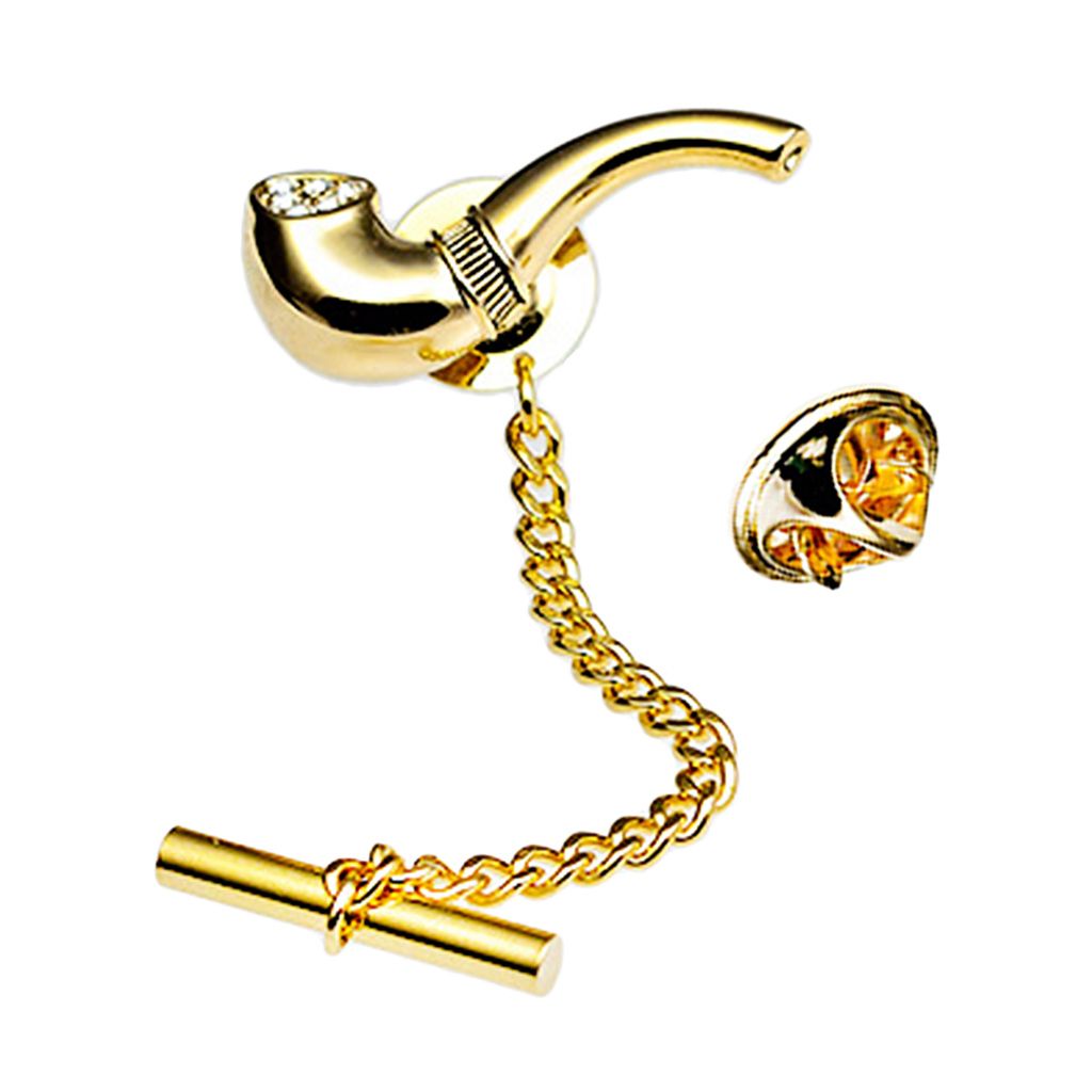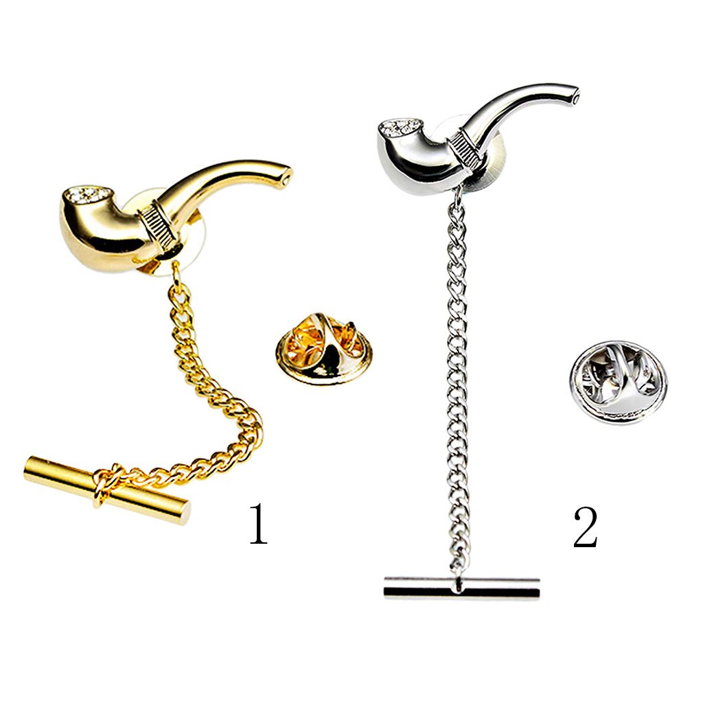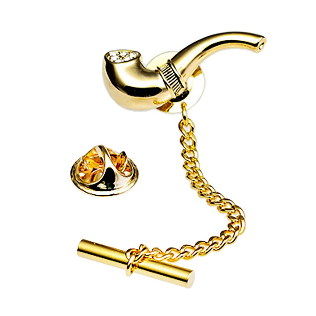 Shinny smoking pipe tie tack for men, colors in silver tone and gold tone.