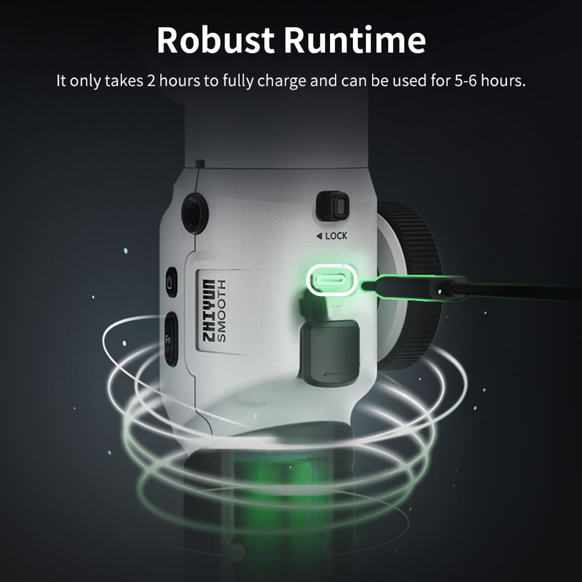 【Built-In Fill Light】A new fill light with the 650 lux peak illuminance is added to the tilt axis, making SMOOTH 5S an all rounder for better telling your story. And you can also add two external magnetic fill lights(sold separately) to have brighter lighting effect that enables a peak illuminance of 2040lux.