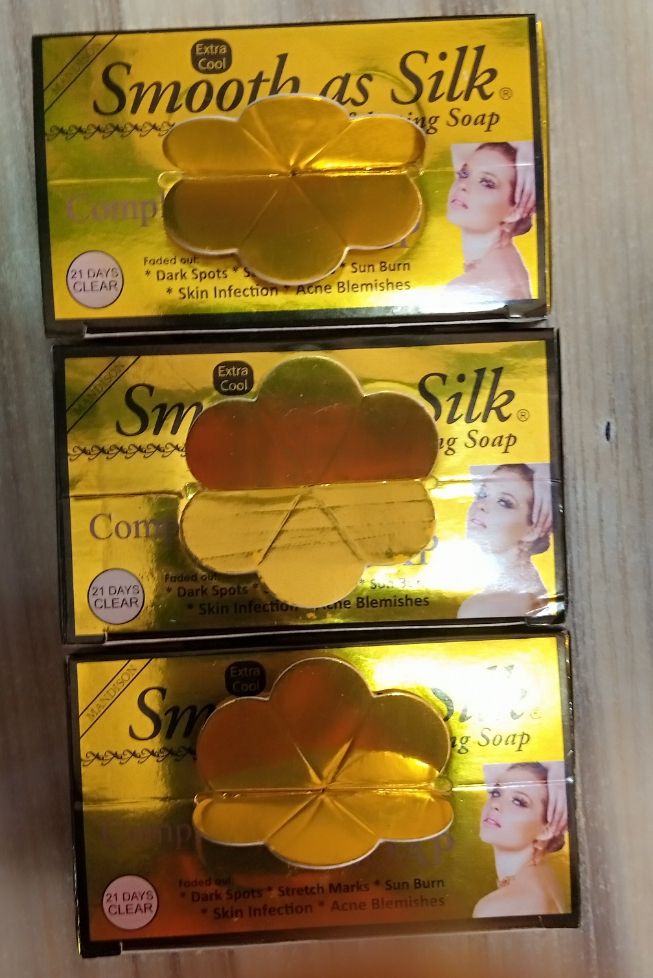 Smooth As SIlk - Complexion Toning Soap with a special formula. When used daily as part of your skin care regime, it helps give a clearer, brighter and lighter complexion. Fadesout pimples, dark spots, stretch marks aand cream reactions.