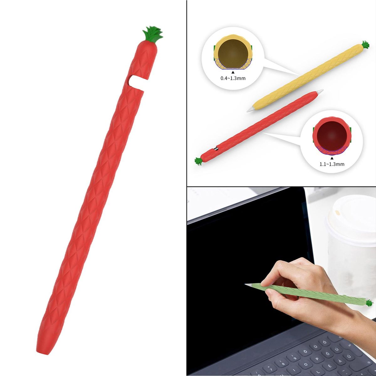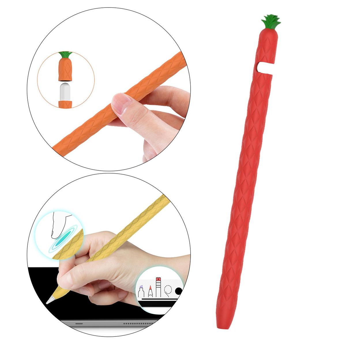With very smooth grip and no slip silicone sleeve compatible with 1/2 generation PencilThe soft silicone sleeve hugs your pencil tightly to prevent sliding and dropping down to the floor or breaking.Nice Grip for Writing: The tip protectors prevent your pencil nib from moving around, scuffing or scratching the surface or any damage. To ensure that the pen does not slide during use, be patient when installing.Do not press too hard on the part that has been inserted into the pen to increase friction.The Premium soft silicone and thread design, non-slip and sweat-proof, don't have to worry about sweaty hands again