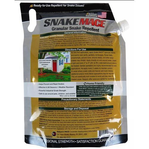 Snake MACE is a potent time-release formula making it both highly effective and longer lasting than other leading brands. Trusted by many, Snake MACE is used heavily in both commercial and home/garden applications. Because of snake's natural aversion to Snake MACE™ ingredients, product effectiveness will never diminish. Snake MACE DOES NOT require rotation with other repellents to be effective. This repellent works immediately on contact and continues to repel for sometimes months on end. Natural ingredients make it safe for use in protecting flowers, crawl spaces, gardens, play grounds, golf courses, barns, landscapes and any space where snakes may hide.