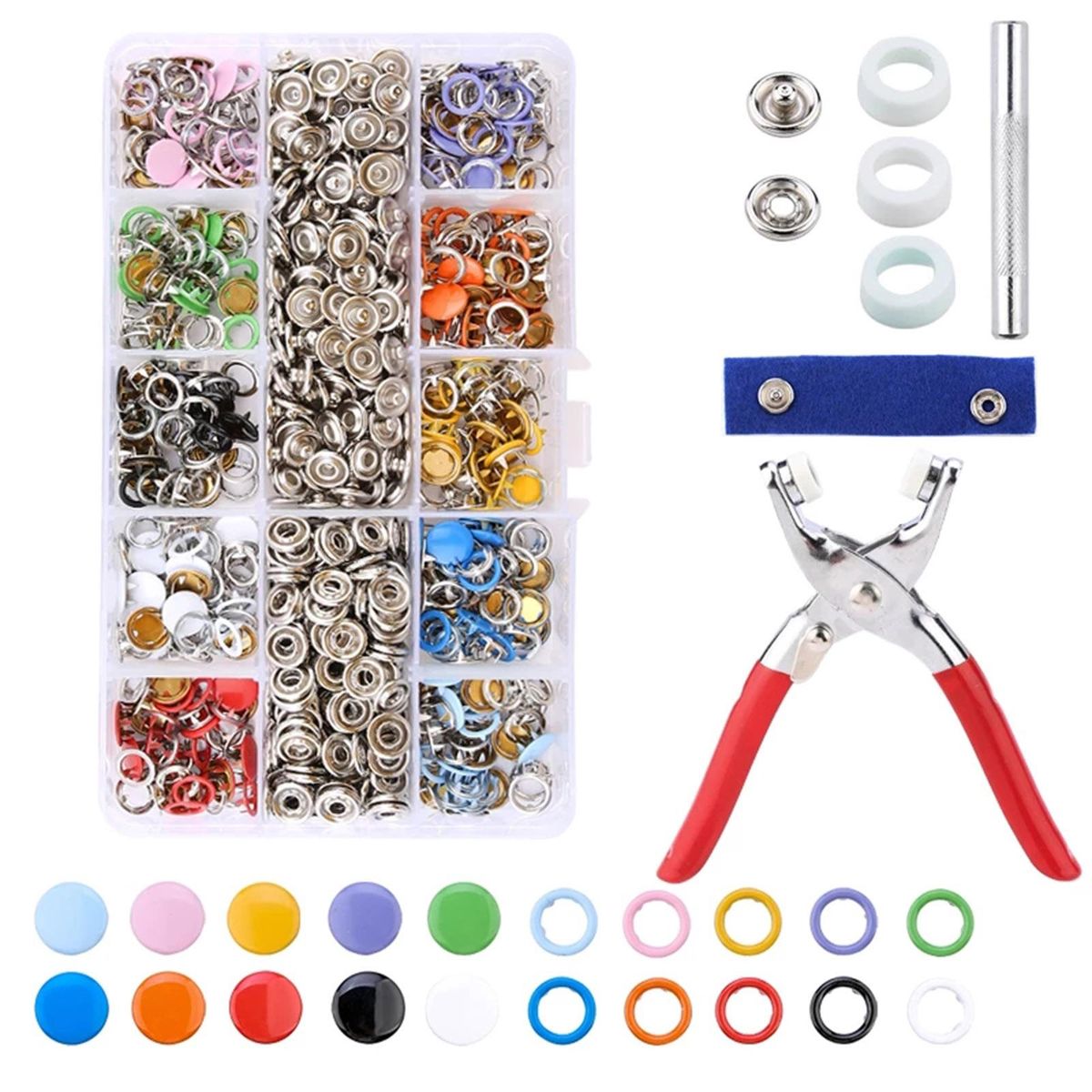 Buy Snap Fasteners Tool Kit Hollow and Solid Metal Prong Snaps Buttons for Clothing Crafting Hats Bags Curtains DIY 200PCS 10 Colors 9.5mm in Nigeria
