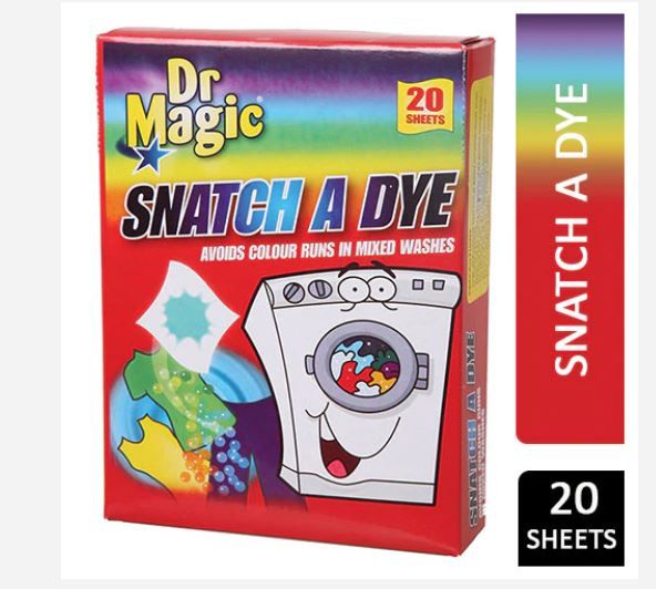 Snatch A DyeAvoids colour runs in mixed washesKeeps colours crisp and sharpAbsorbs running dyes and dirtCan be used for washing machines and hand washesSuitable on all fabricsBiodegradable
