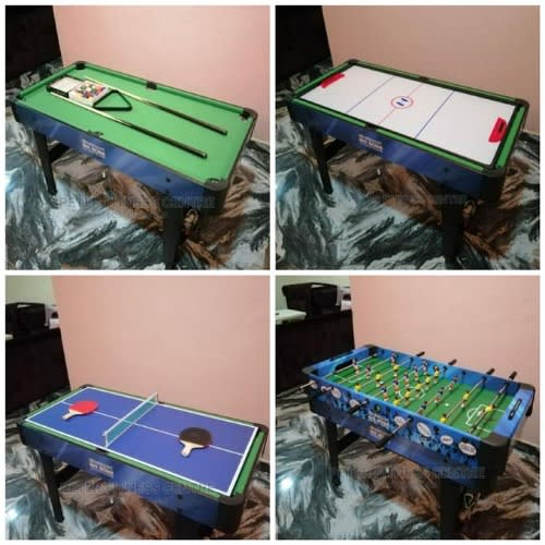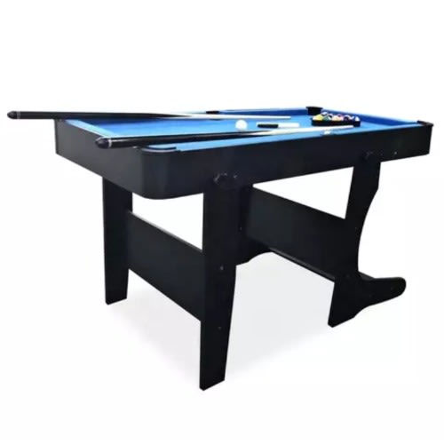 2 in 1 Foldable and moveable 6 feet snooker pool table and tennis table. Imported and with the accessories, including Cue sticks, Bats, Balls, Chalk, etc. This pool table is a great space saver; it can easily be folded up after use. Measurement: 6 feet by 3 feet. Comes with a green colour felt and black