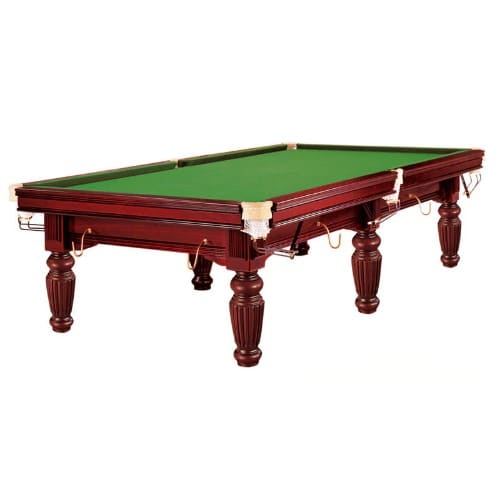 This is a 9 feet international size Slate Bed Snooker Table for professional players and tournaments. It's an english-style snooker table made using selected hardwood for the frame and cushions and a genuine slate bed. The table finish is mahogany.