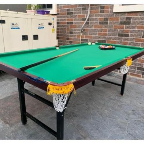 It is a 6ft length and 3.5ft width snooker board.it is an indoor snooker board.it does not occupy a large space.it can be move from one place to the other.