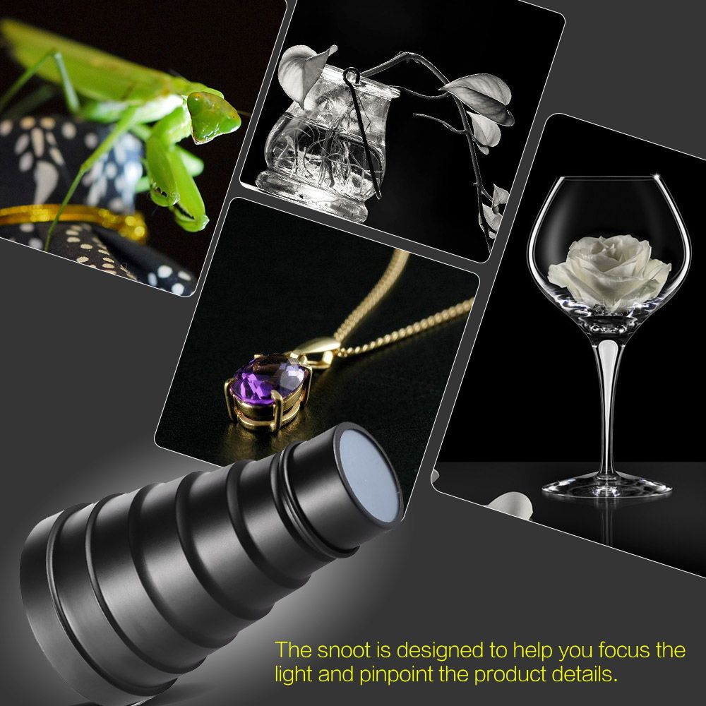 The snoot is designed to help you focus the light and pinpoint the product details.