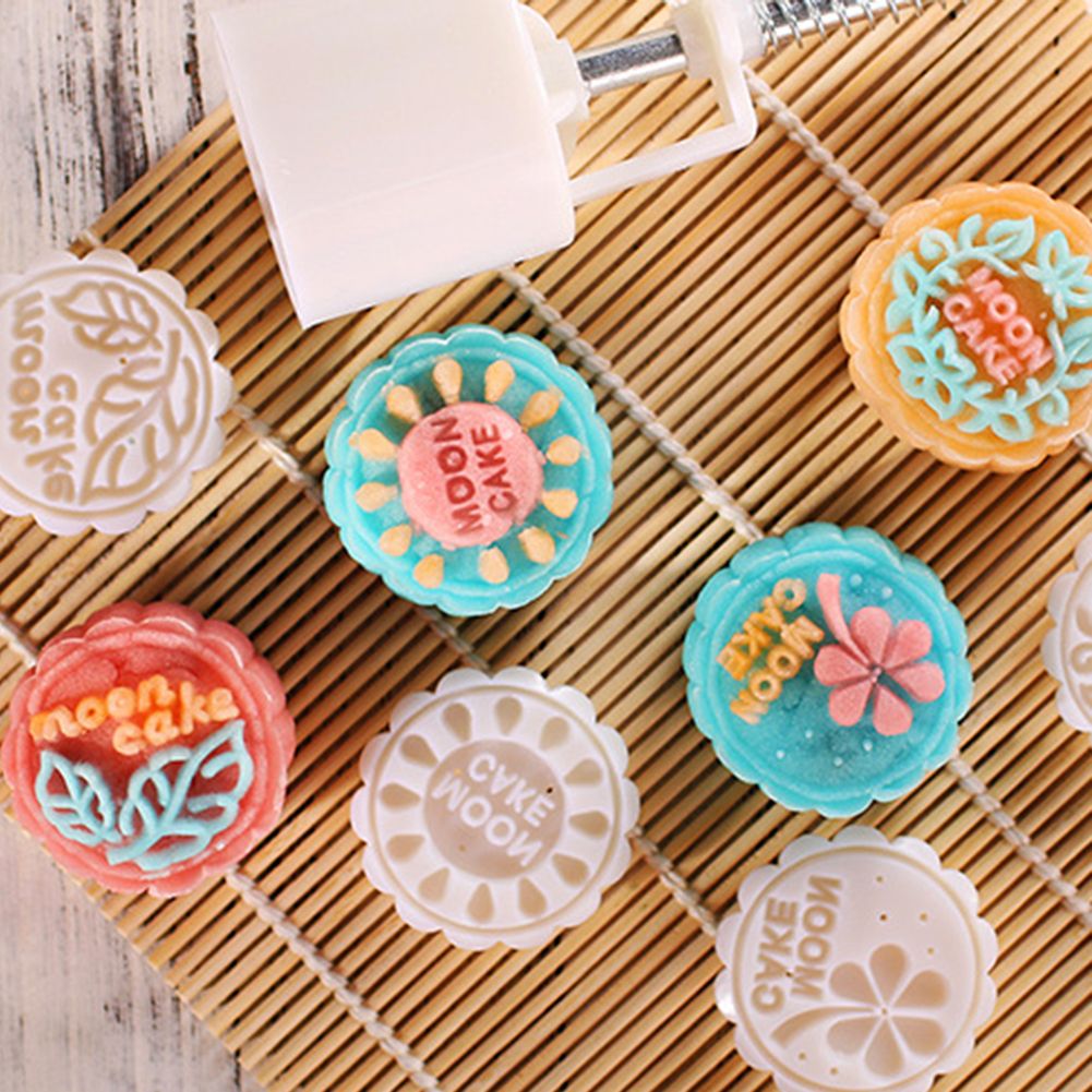 Snow skin round moon cake mold hand-pressed mung bean cake mold 6-piece set baking tool cake mold