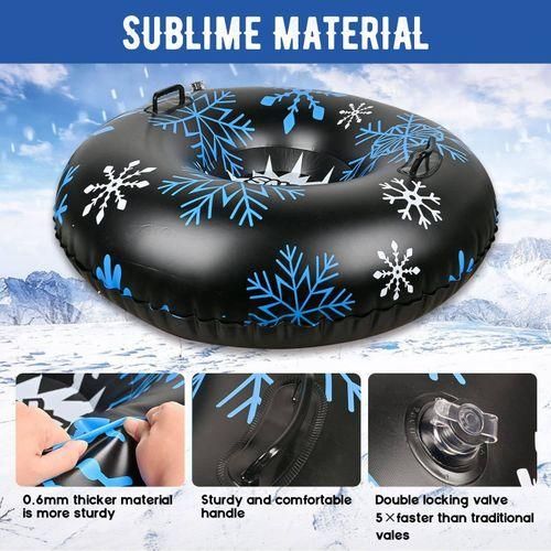 The sled tube is made of a new thickened material that is safe and durable: Environmentally friendly and impact-resistant PVC. Friction, wear and collision are all highly resistant. High quality, suitable for fun throughout the winter.