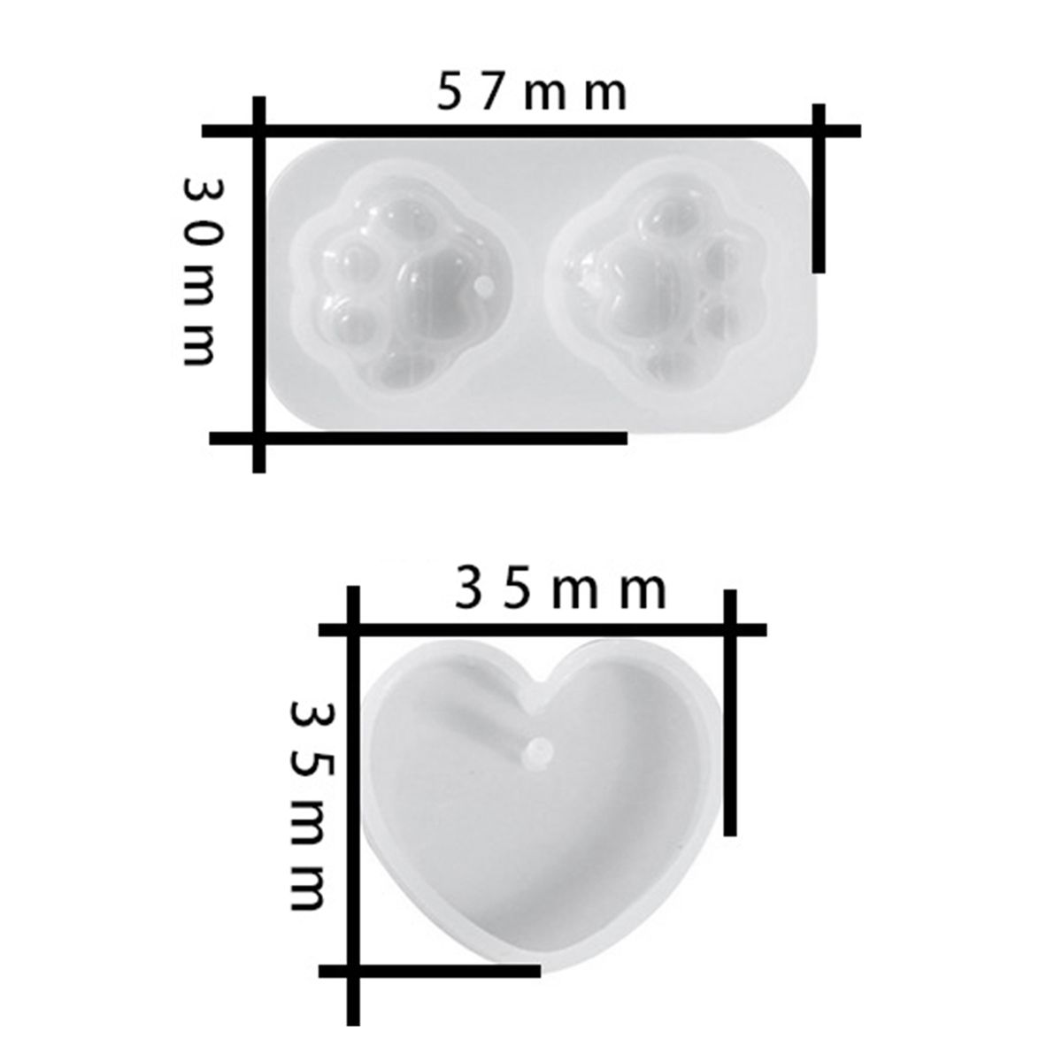 The length of the cat claw mold is 5.7cm, the width is 3.0cm and the height is 0.1cm. The length of the love heart mold is 3.5cm, the width is 3.5cm and the height is 0.1cm.