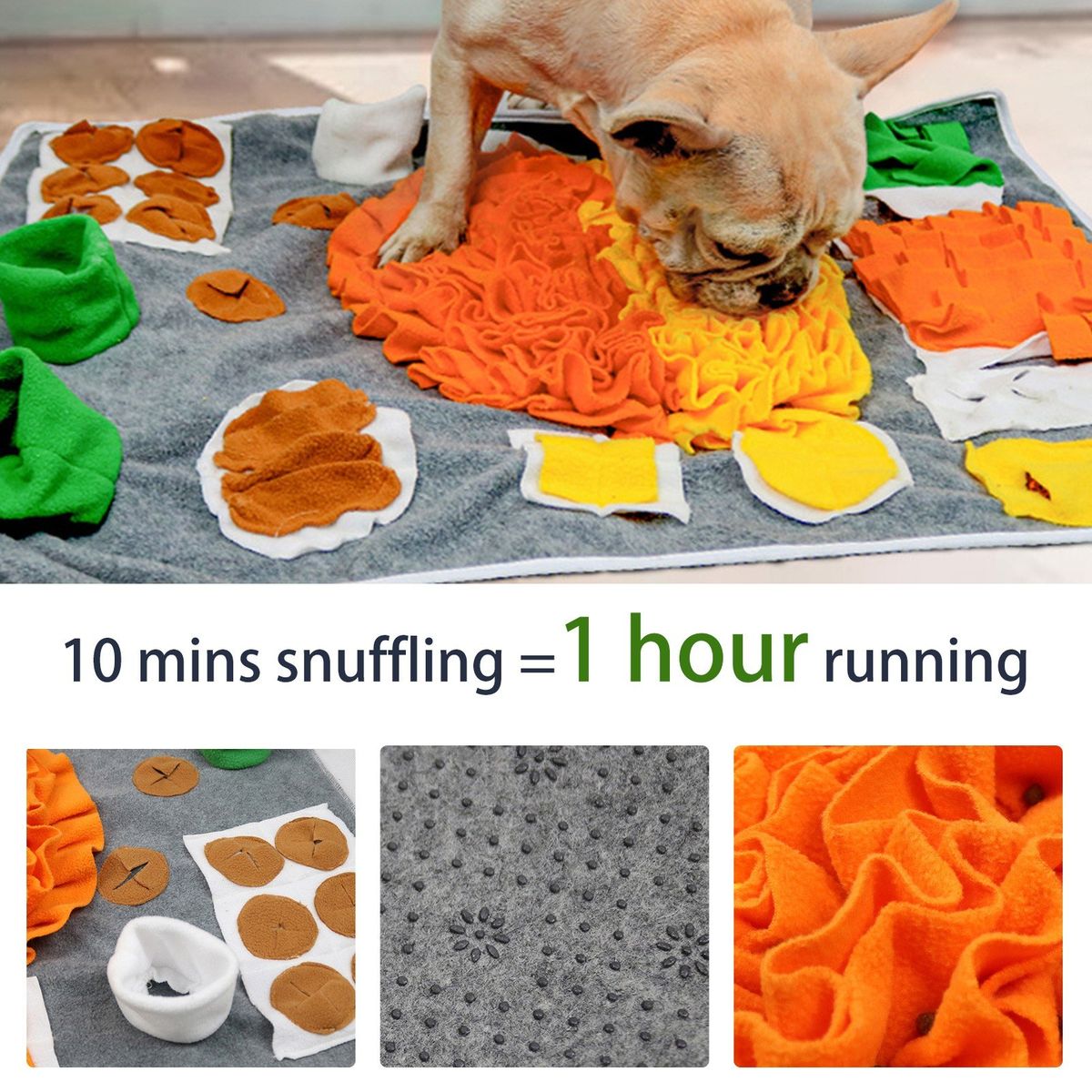Non-slip Design amp; Portable: Non-slip bottom design prevents the mat from sliding while the pet is sniffing and foraging, making your pet more focused on foraging. The snuffle mat can fold, which is small and does not occupy a place, convenient to carry.