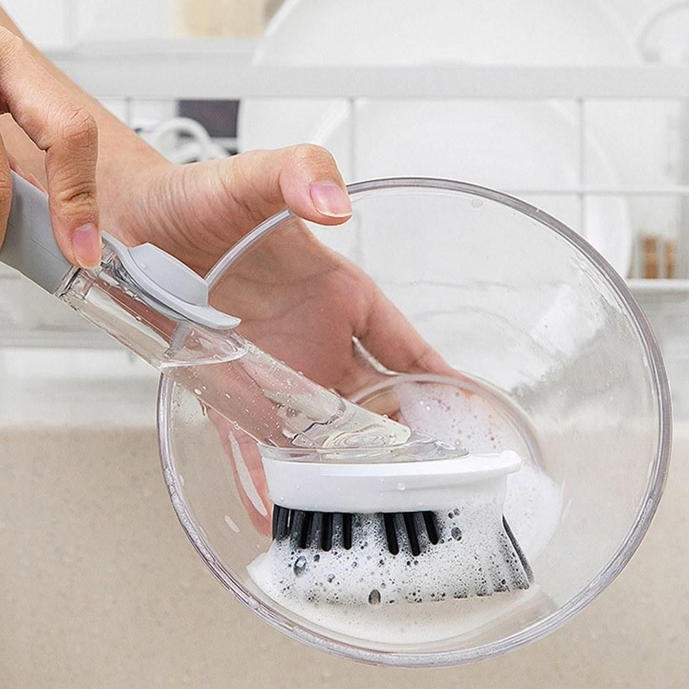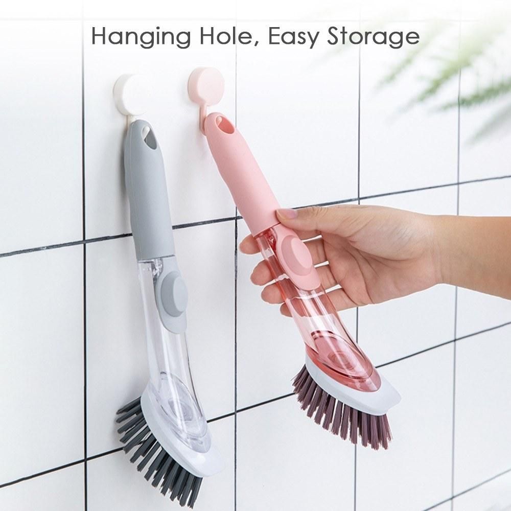 Buy Soap Dispensing Dish Brush and Sponge Household Cleaning Brushes Multifunctional Dishwashing Sponges for Pot Pan Dishes Sink Stovetop Wall Kitchen Supplies (1 Handle + 2 Brush Heads + 2 Sponge Heads) in Nigeria