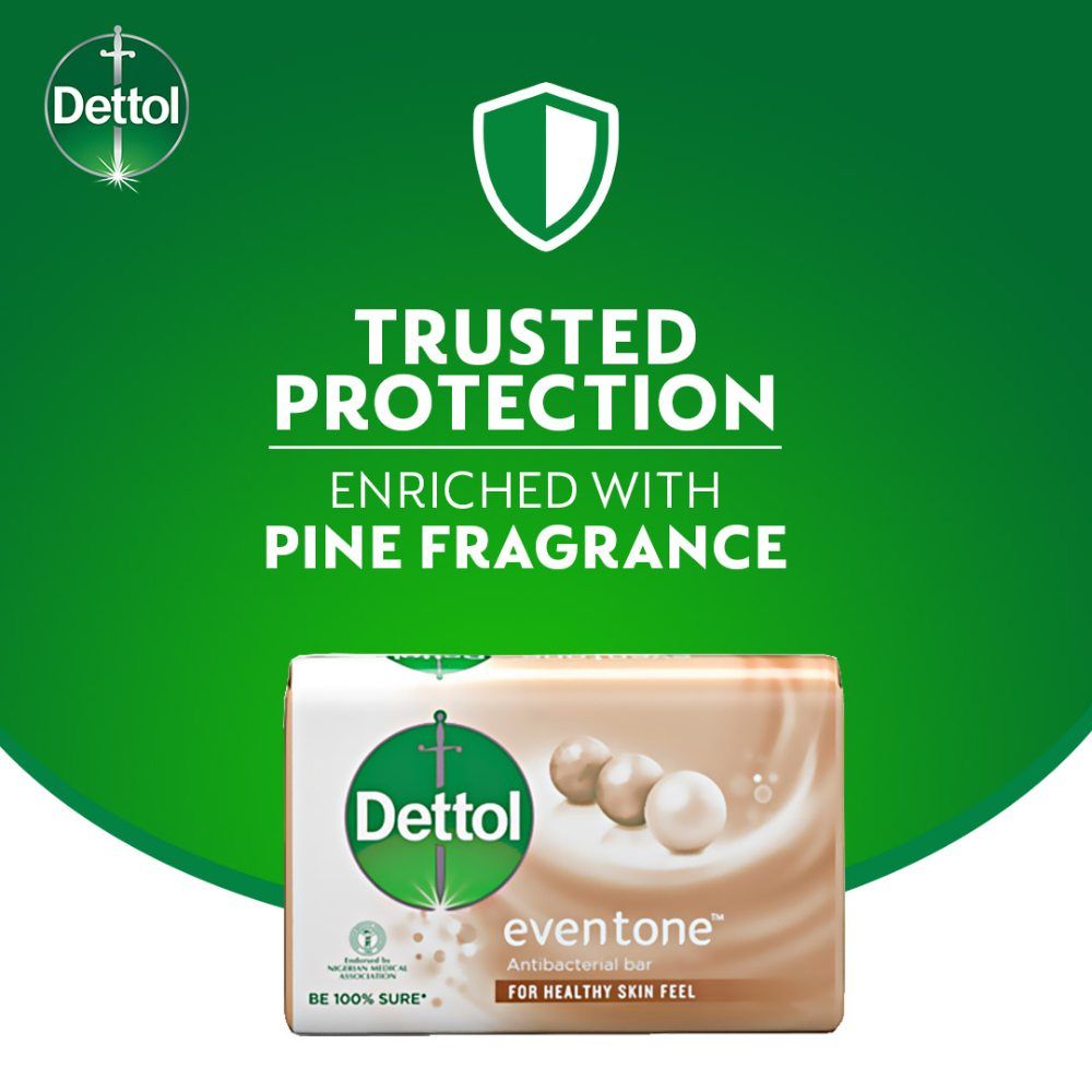 Dettol Even tone with its unique formula and trusted and trusted protection removes germs, oil and dirt giving you the confidence of healthy and evenly toned skin.