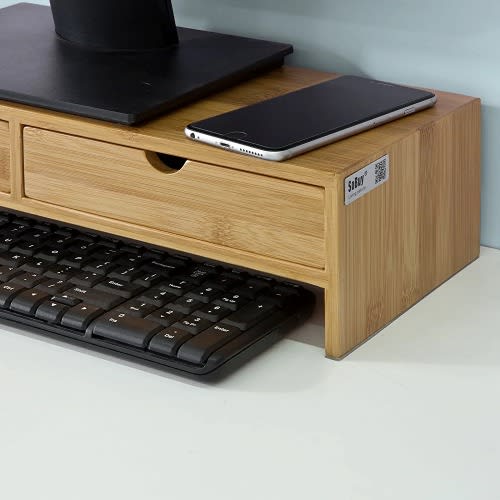 Buy Sobuy Bamboo Computer Screen Monitor Stand & Organizer With 2 Drawers in Nigeria