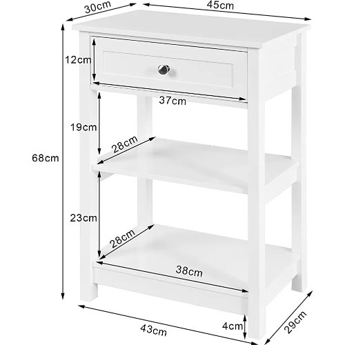 Material/Finish: MDF/White. Dimensions: W45 x D30 x H68cm. Weight: 8kg. Load capacity: 25kg.