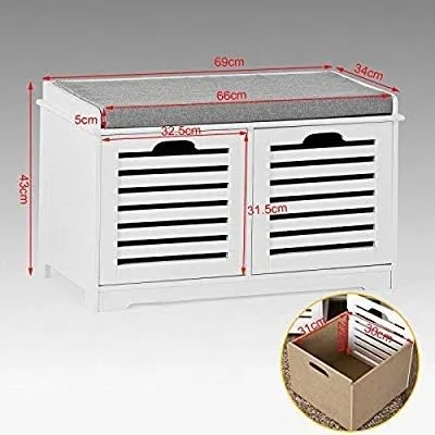 Buy Sobuy Storage Bench 2 Drawers & Removable Seat Cushion - White in Nigeria