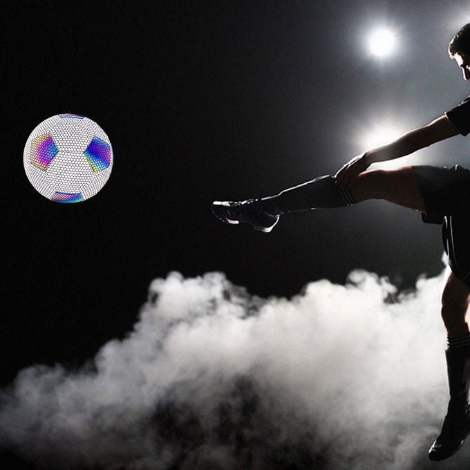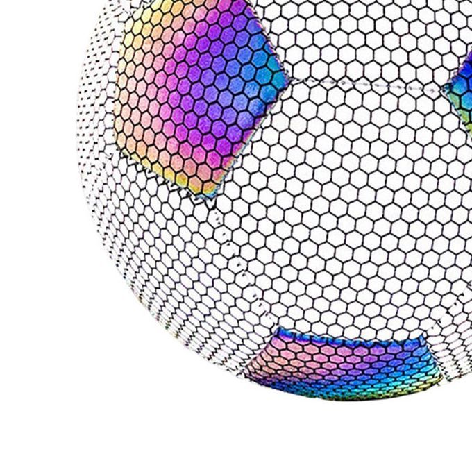 The Holographic Glowing Reflective Soccer Ball is a regulation size soccer ball that appears holographic and glowing at night.