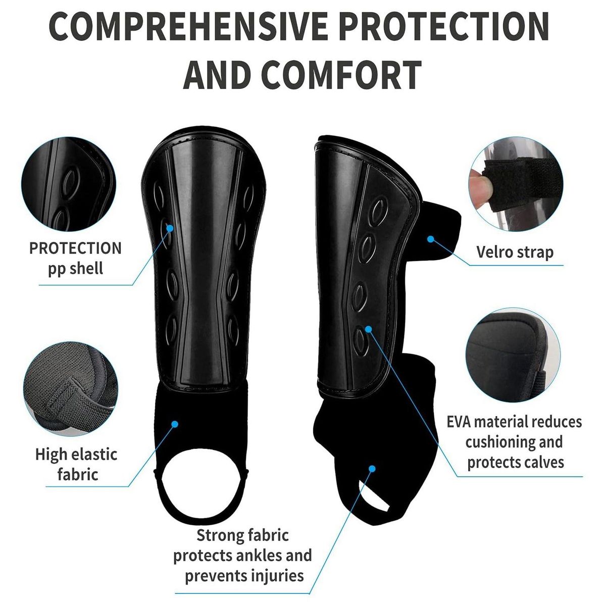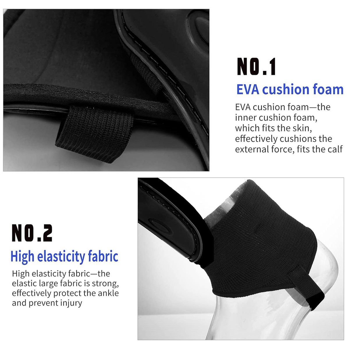 An Ankle Strap for Protection: each shin guard is equipped with an ankle strap, to effectively relieve the external forces, provide ankle support for stability, and prevent injuries for the beginners and athletes; Adjustable strap make it fit for most people