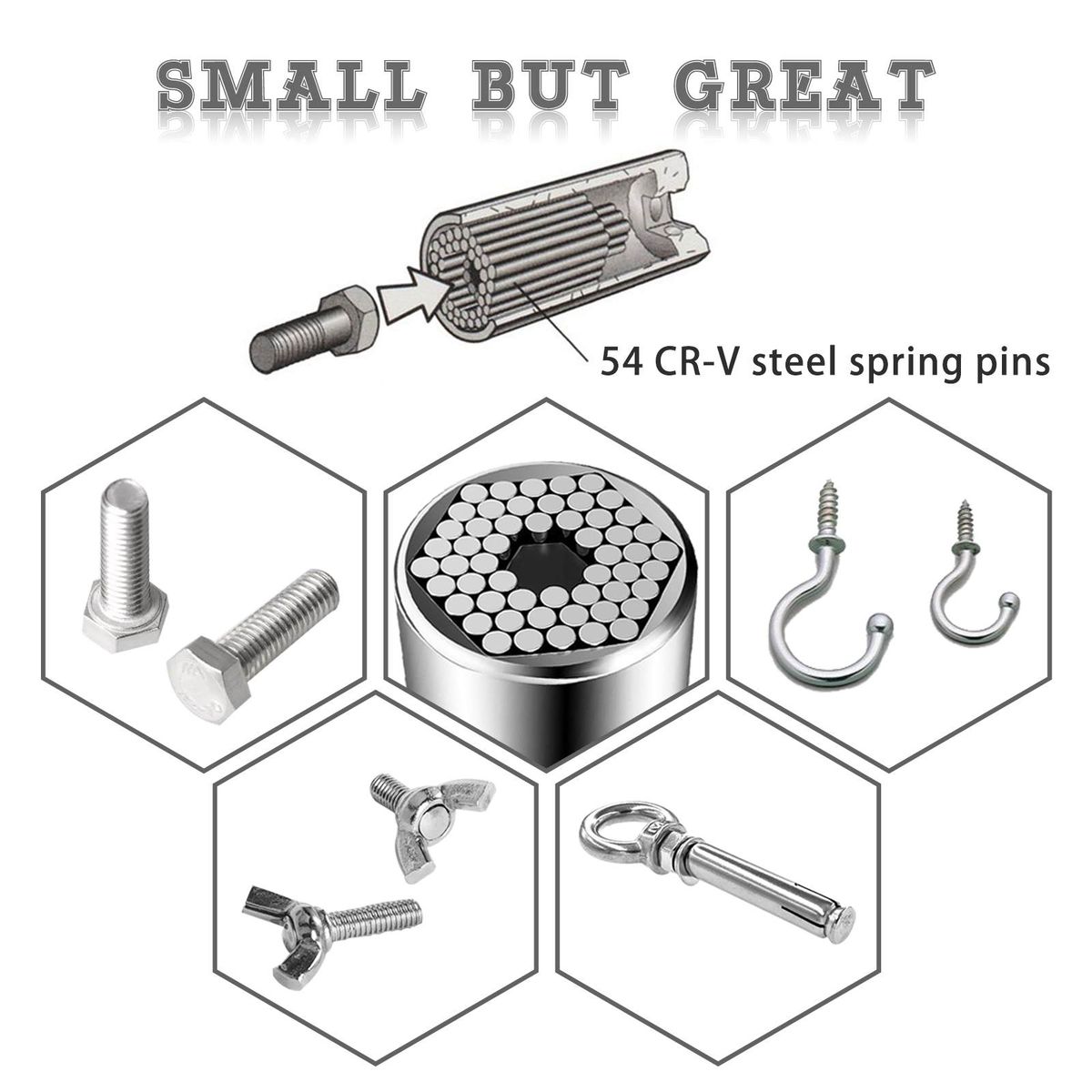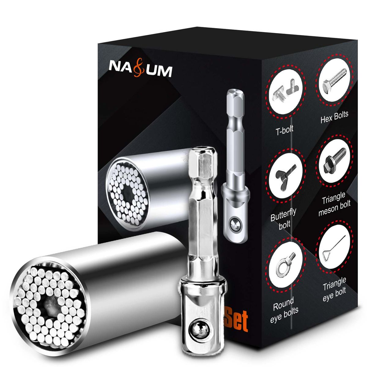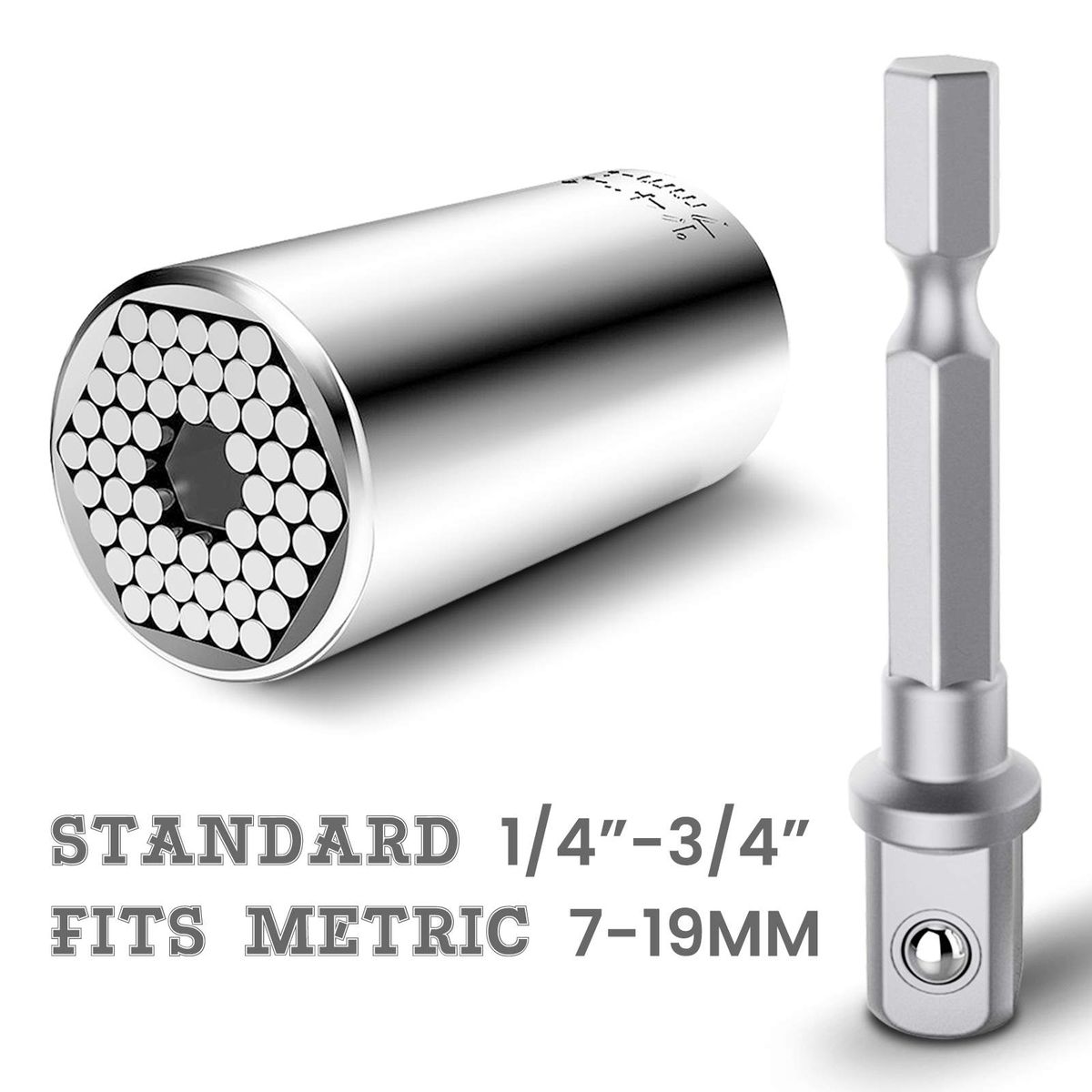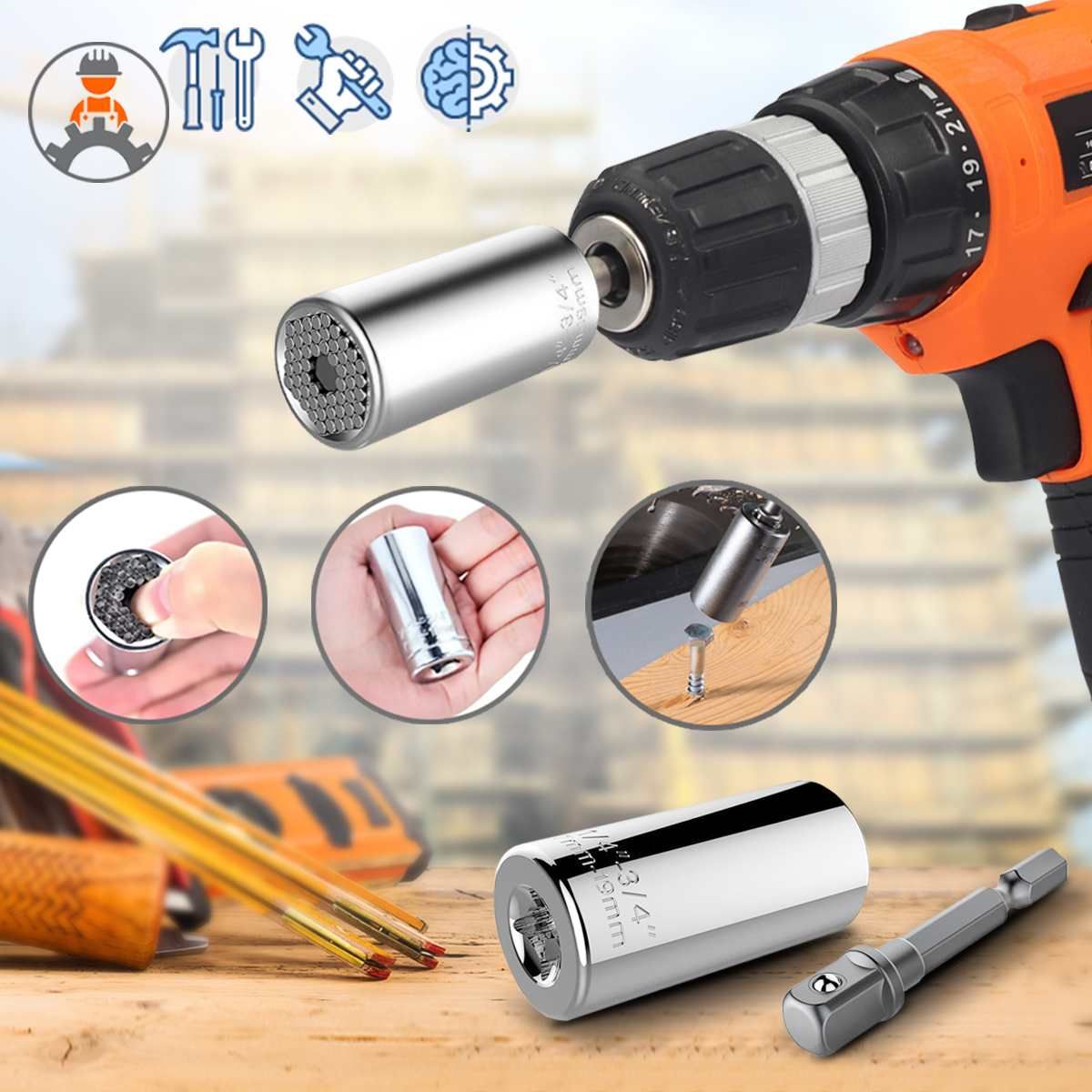Specification:Style: DrillApplication range: 7-19 mm all specificationsLength: 52 x 26 mmNet weight: 163 gMaterial:Universal socket fits fasteners in almost all shapes - square, hex, wing nuts, cup hooks, screws, various hooks also break.As a mini tool, the size 7 mm to 19 mm, fits standard 1/4 to 3/4 inch and metric 7-19 mm nuts and bolt heads.With this simple and innovative tool, the work will be done faster and more accurately.If you finally, you will love this little help after you get used to putting it in your job.It can definitely make a big difference in your daily life or work.Always applicable for household maintenance, automotive, manufacturing, construction and others.Efficient work:Style: Every time you decide to repair or make an improvement to your furniture repair or other job, you will find it difficult to meet your requirements at the same time.Do it yourself But DANIU universal sockets help you to easily investigate the problem and finish the job efficiently.The package contains:1 x 7-19 mm universal repair tools1 x adapter"